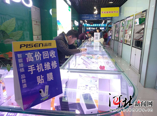 4月10日,石家莊太和電子城一手機(jī)回收柜臺(tái)生意冷清。 實(shí)習(xí)生 董達(dá) 記者 高原雪攝