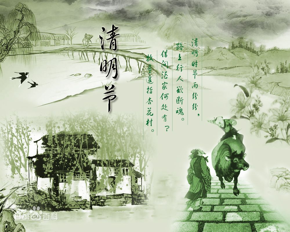 《歷書》:“春分后十五日,斗指丁,為清明,時(shí)萬(wàn)物皆潔齊而清明,蓋時(shí)當(dāng)氣清景明,萬(wàn)物皆顯,因此得名。”清明一到,氣溫升高,正是春耕的大好時(shí)節(jié),故有“清明前后,種瓜點(diǎn)豆”之說(shuō)。清明節(jié)與端午節(jié)、春節(jié)、中秋節(jié)并稱為中國(guó)四大傳統(tǒng)節(jié)日。2006年5月20日,中國(guó)文化部申報(bào)的清明節(jié)經(jīng)國(guó)務(wù)院批準(zhǔn)列入第一批國(guó)家級(jí)非物質(zhì)文化遺產(chǎn)名錄.
